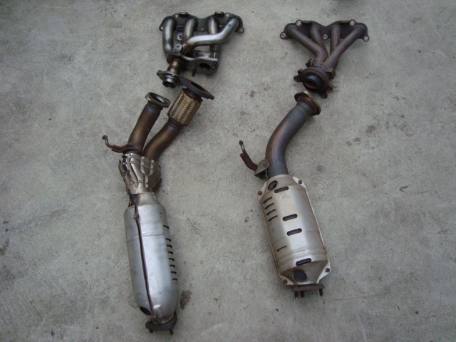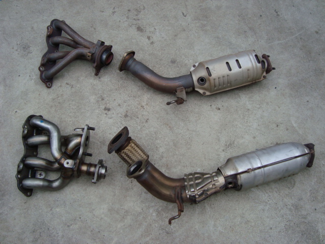 iSとTYPE-Rのエキマニ。 太さも形も全くの別物です。 触媒までの長さが違いますが、マフラー側で帳尻が合うので大丈夫。