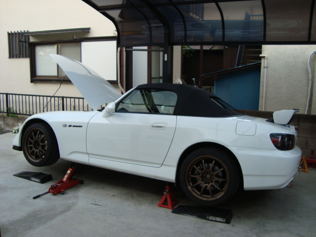 マッハ号はビデオカメラスタンドの取り付け&オイル交換です。 新作のビデオカメラスタンドは、ウィンドディフレクター対応(一緒に装着できるっとことね!)ですよ。 ステーの厚みも高級感があって良い感じでしょ?(笑) 最近、割れているのをよく見かけるプラスチック製の純正オイルフィラーキャップ・・・アルミ製の軽量タイプがお勧めですよ。 どういうわけか、S2000はオイルフィルターが外れやすいんですよね。(謎) キチンとトルクを掛けて締め付けていても外れることがあるのは、あまりにも有名な話。。。 ってことで・・・オイルフィルターには、オイルフィルターストッパーを付けましょう。 これで安心して走れますね!!