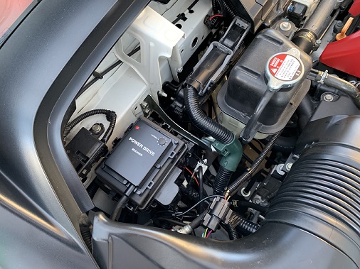 pivot製のサブコン、パワードライブも取り付けました♪ 車の個体差やチューニング度合いによって圧力センサーからの信号を 9段階に調整し、ブースト圧をあげることで 10PS程度のパワーアップが可能になります。