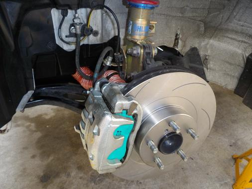 OHしたキャリパーに新品のパッド&ローター、フロントブレーキダクトキットも装着して熱対策も万全です♪