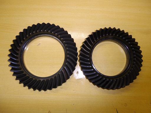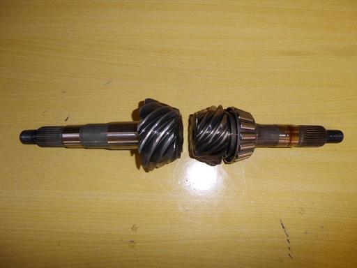 ピニオンギアにはS2000同様、リジットタイプのディスタンスカラー(写真右)を使いますよ。 純正のディスタンスカラーは、押し潰しながらピニオンギアのプレロードを決めるため作業効率は良いのですが、長い間使っていると自然に潰れてバックラッシュや歯当たりが狂い、思わぬトラブルを招くことがあります。 Arrowsでは、潰れることのないリジットタイプのディスタンスカラーを使うことでトラブルの防止に努めています。