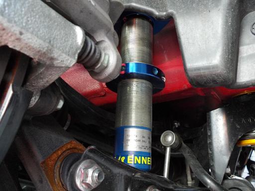 また、サーキットでのおおよそのストローク量が分かったところで、フルバンプ直近でショックとアッパーマウント(スプリングのズレを防止すためのツバの部分)が干渉しないことを確認し、リアのバンプラバーを外してしまいます。 これで更に車高を下げた時の正確なストローク量を測ることが可能になりますよ。