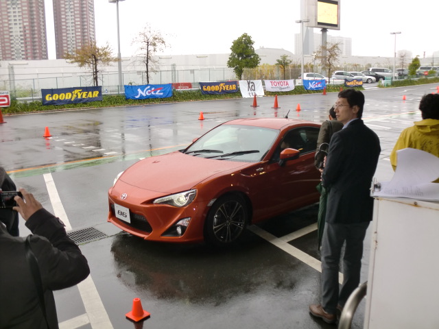 次に足回り。 試乗した場所が場所だけに、激しく振り回してもらうことは出来ませんでしたが、フロントもリアも路面によく追従している感じがしました。 ウェット路面&純正タイヤの割には、しっかりと路面を捉えていたと思います。 特にフロントの入りは良さそうでした。 S2000は「ツンツン」した感じで常に緊張感を強いられますが、86は「しっとり」した感じで街中でも気楽に乗ることが出来そうですよ。